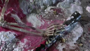 The annoyed Klowns take out their pies and they start throwing several pies at him, melting him into a skeleton in the process. Then, Shorty puts an enormous red cherry on top on the melted ice cream-like remains of the dead officer in order to make it look like a sundae.