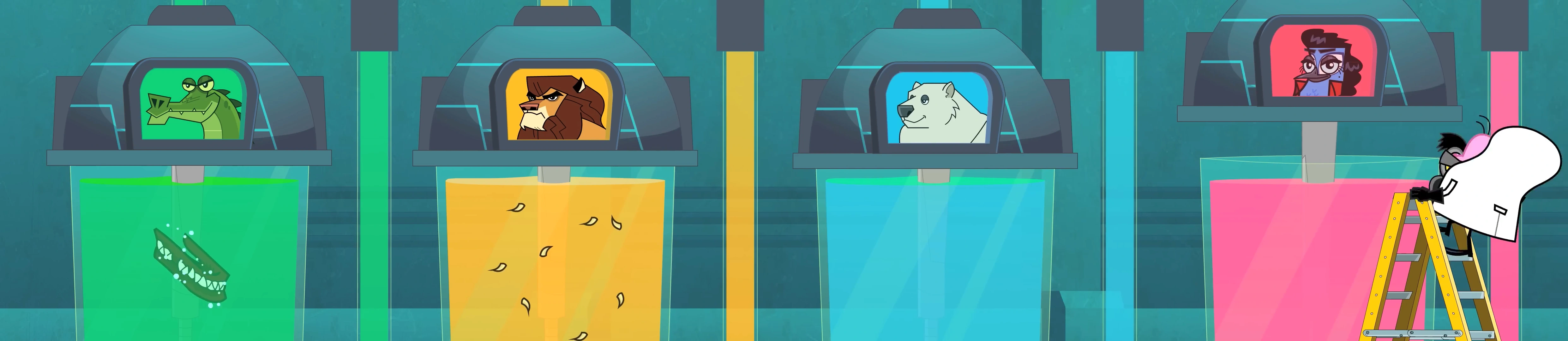 Pen and Guin went to the zoo and stole an alligator's teeth, a lion's claws and a polar bear's tears. Then they went to kidnap pop star sensation Meeka from his concert. They brought him back to Mingo's lab and shaved off his hair.