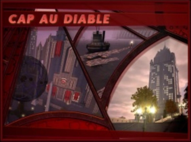 Cap Au Diable is the most prosperous looking city in the Isles It boasts tall skyscrapers of Aeon City that overlook the more residential areas of Haven and New Haven below. Doctor Aeon's home office for his private mad-science corporation Aeon-Corp is located in the center of the city where he is constantly at work either building and mass-producing Arachnos's military-ware or just pursuing his own projects. The city is home to the Power Transfer System, Aeon's power system that costs pennies a day to run and powers the entire city endlessly and even supplies power to other high security areas of the Isles. New Haven is home to the W.S.P.D.R. News headquarters and Aeon University, the world's foremost university of super-science with the least moral oversight. There is also a thriving black market in the area and a nominally' priced plastic surgeon/butchers one can hire, provided the notion of who the new face came from isn't an issue. High above the city on Mount Diable, characterized by it's almost devil-horn-like plateaus, lurk the Circle of Thorns who practice their rituals on the isolated and dangerous peaks of the dormant volcano.