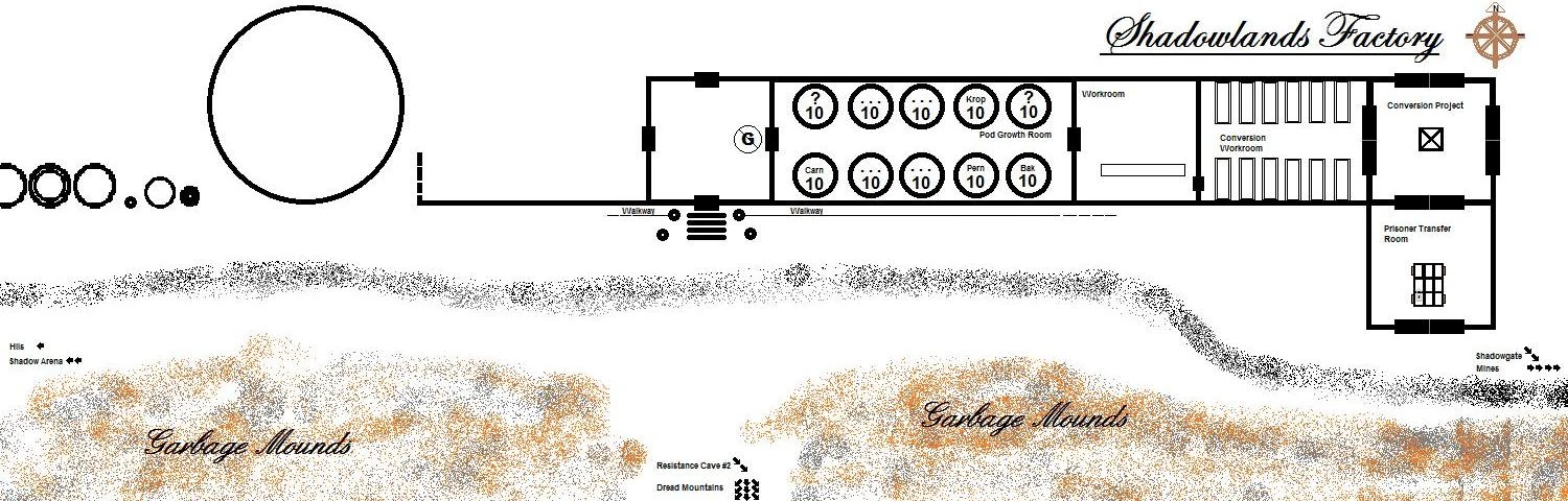 The Factory, also known as the "Shadowlands Factory" and the "Shadow Factory", is an evil factory in the Shadowlands near the Barrier Mountains and this place is built and owned by the Shadow Lord to create most of the monsters for the Shadow Army.