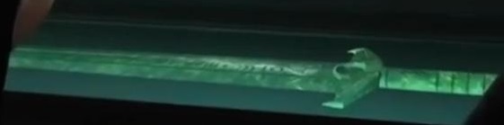 The sword is of a typical Jian style blade, a common straight sword of ancient China. The entire sword seems to be carved from a single piece of jade.