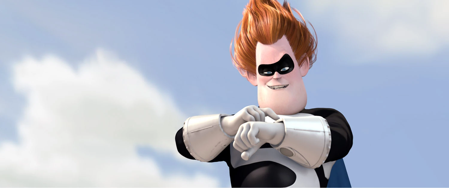 Syndrome is first seen wearing the remote when he reveals himself to Mr. Incredible, while using it to stop the Omnidroid v.X9 from killing the superhero. Using the remote, he drops Mr. Incredible onto the ground, and then uses his zero-point energy to fling him around the area.