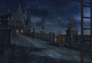 A rickety wooden bridge within the castle that connects the Clock Tower. This outside area is accessed through the Chapel. There is an item, the Armory Key used to access the Armory, retrieved by walking slowly on the bridge. If the key falls, it can be found in the Floodgate room. Across the bridge, the path diverges: right goes to the Waterway, and left to the Clock Tower.