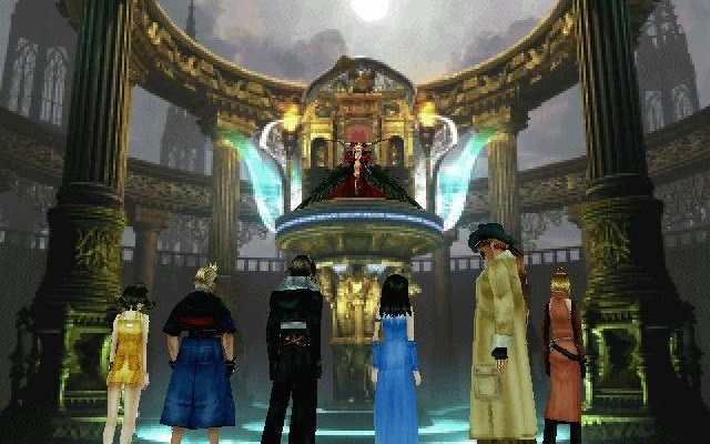 The Legendary SeeDs confronting Ultimecia at the Master Room within her Castle.